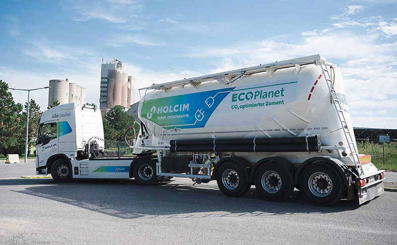 Silo Riedel ist seit dem Spätsommer mit der ersten elektrischen Zugmaschine mit Kompressor für Zementverladung im Auftrag von Holcim unterwegs. »Mit der Transformation der Mobilität und des Gebäudesektors können wir positiv zu zwei der stärksten Hebel Richtung Nachhaltigkeit beitragen«, so Gernot Tritthart, Director Marketing & Sales bei Holcim Österreich. Die Zement-Auslieferung erfolgt mit einem emissionsfreien, geräuscharmen Elektro-Lkw, betrieben ausschließlich mit zertifiziertem Ökostrom.