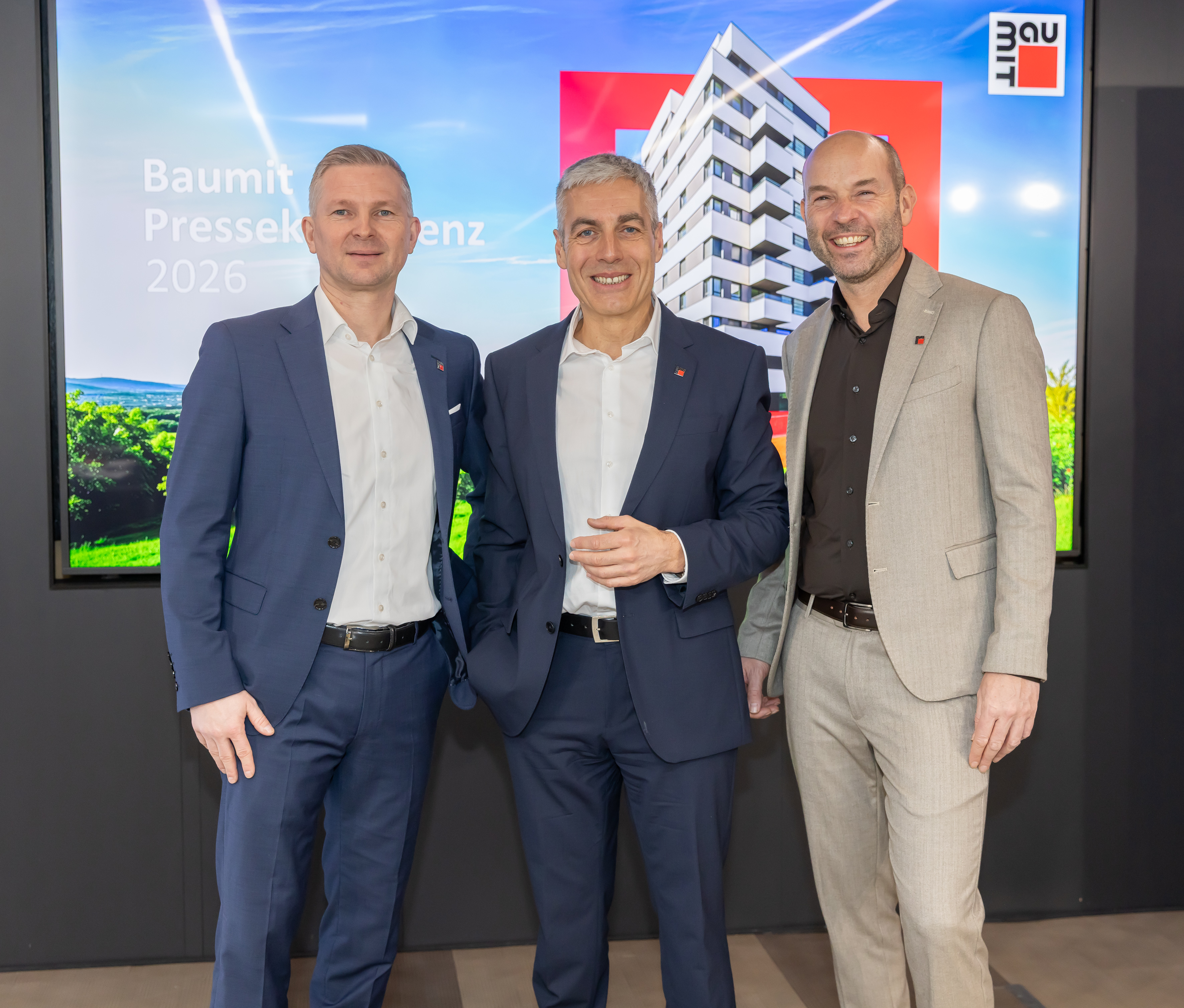 Flankierend betont Baumit den Ausbau industrieller und digitaler Verfahren. Unter dem Titel „BauMinator“ fasst das Unternehmen Projekte zusammen, die neue Produktions- und Bauprozesse erschließen, darunter eine 2025 in Salzburg umgesetzte 3D-gedruckte Transferdecke. Für 2026 kündigte Marketingleiter Roman Stickler weitere Pilotanwendungen mit modularen Wandelementen an und hob die Bedeutung des Zusammenspiels von „Mensch, Produkt und Maschine“ hervor.