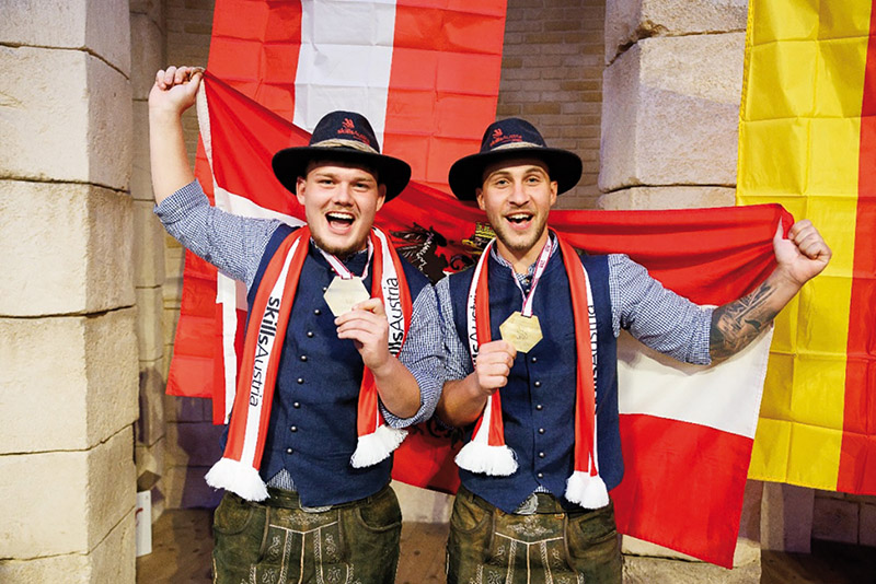 Österreichs Bauwirtschaft darf sich über eine Goldmedaille und ein »Medallion for Excellence« bei den Berufs-Europameisterschaften freuen. Das Betonbau-Team Lukas Miedler und Lukas Ritzberger holt bei den EuroSkills in Herning/Dänemark den 1. Platz. Hochbauer Stefan Lanzl belegt Platz sechs und sichert sich ein »Medallion for Excellence« für außergewöhnliche Leistungen.